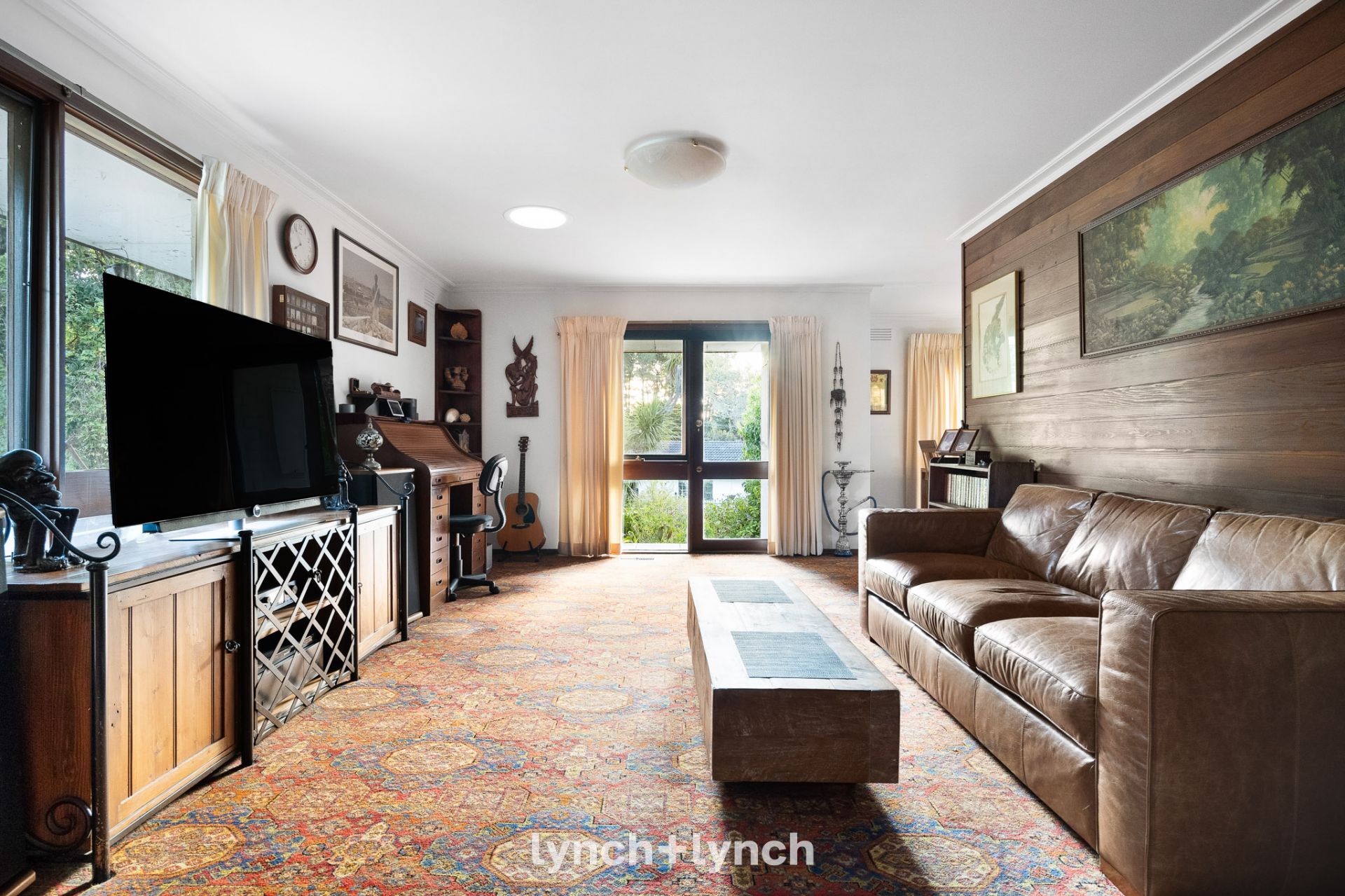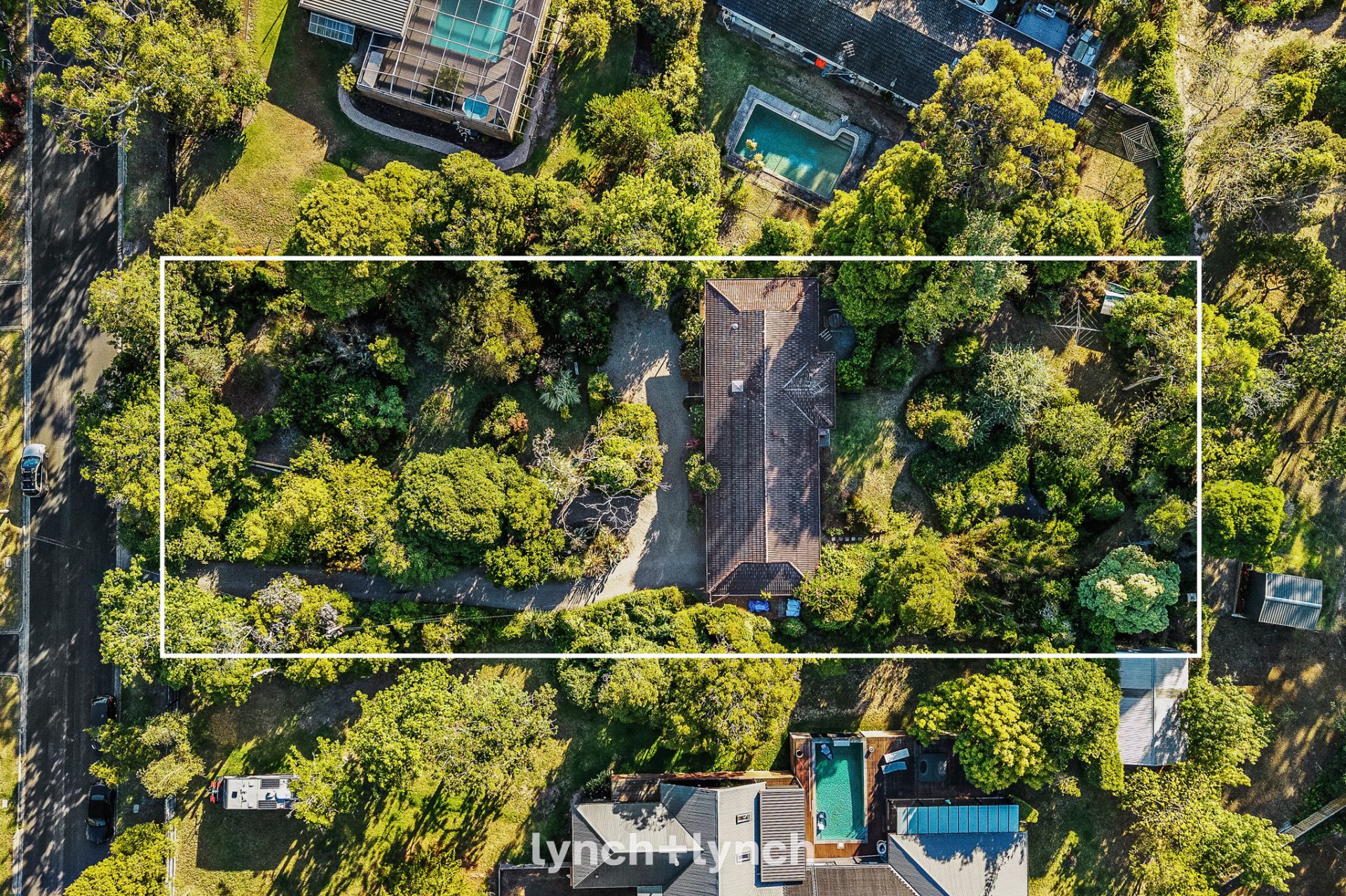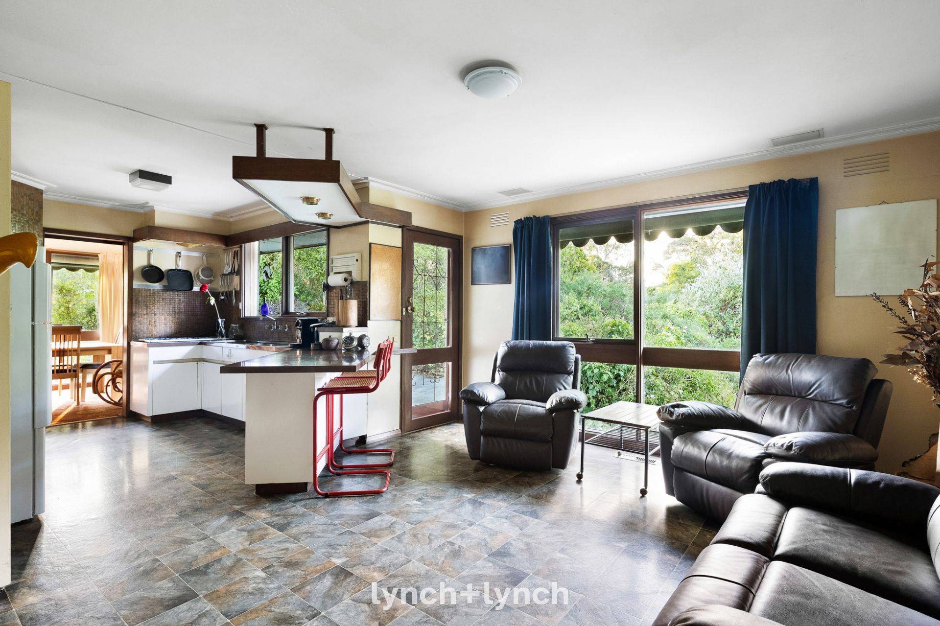 A spacious lounge area flows seamlessly into the garden, offering a tranquil retreat. The dining, kitchen, and family rooms lead to a terrace with a northern aspect, and the main suite with an ensuite provides serene views of the landscaped gardens. A separate home office or children's retreat offers versatility. Fully fenced and enveloped by lush greenery, the outdoor space provides privacy and tranquillity, perfect for entertaining or quiet reflection.