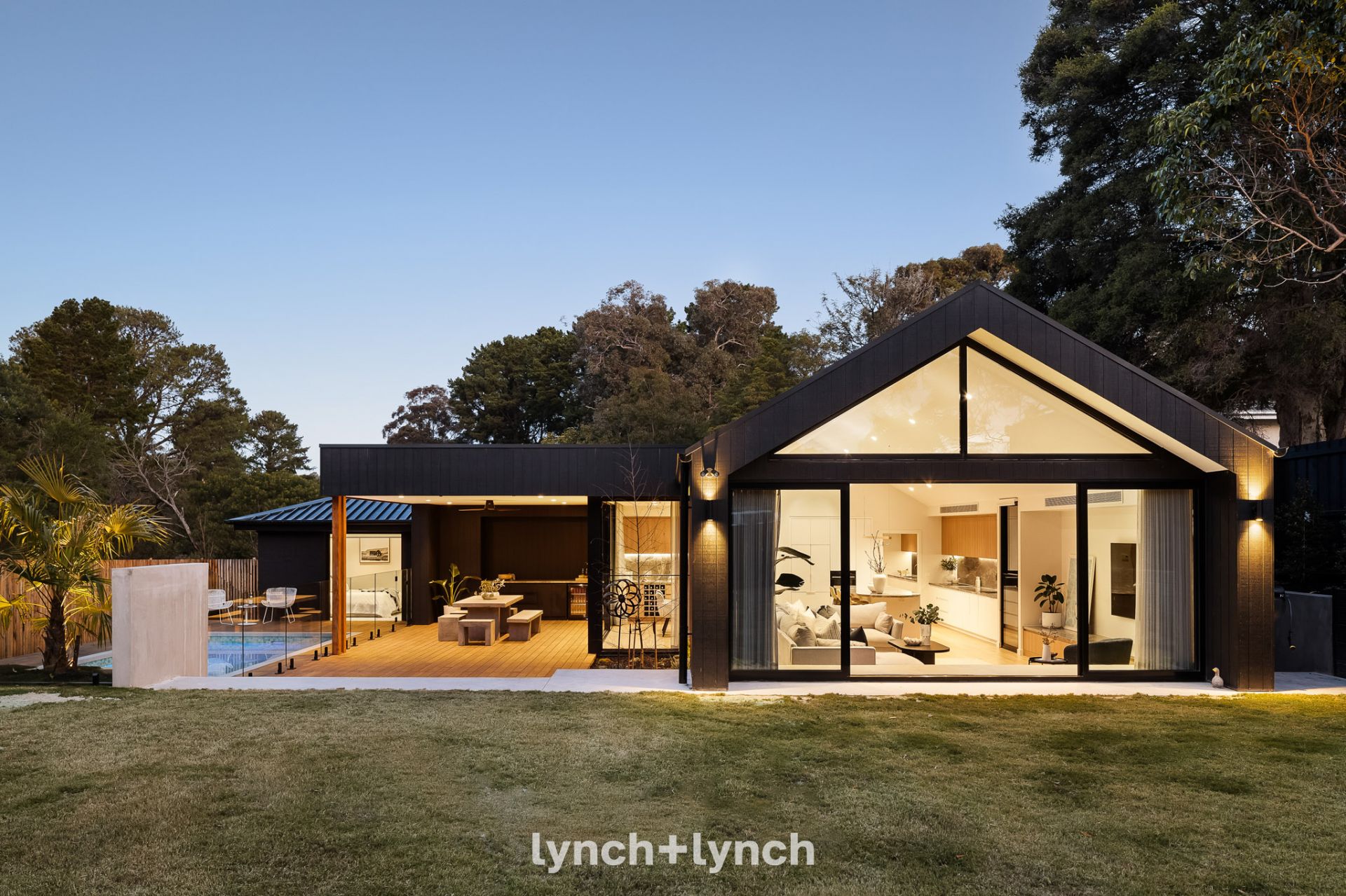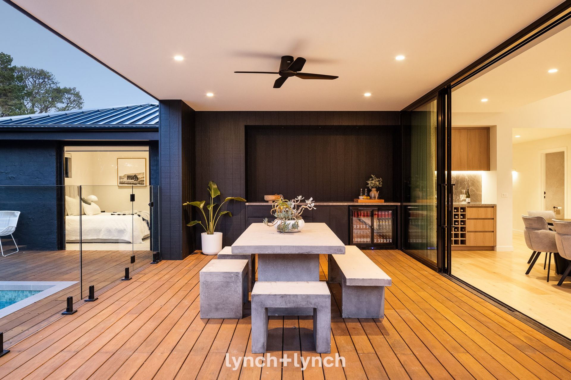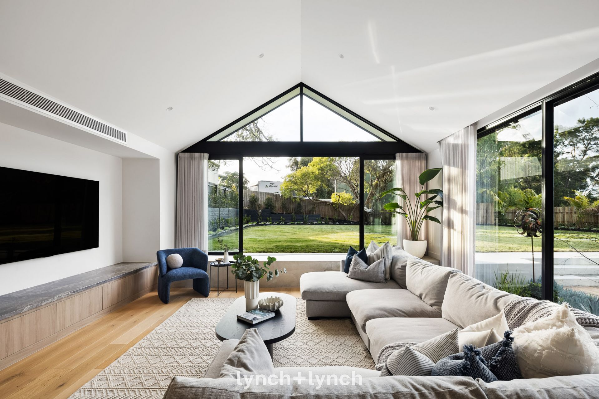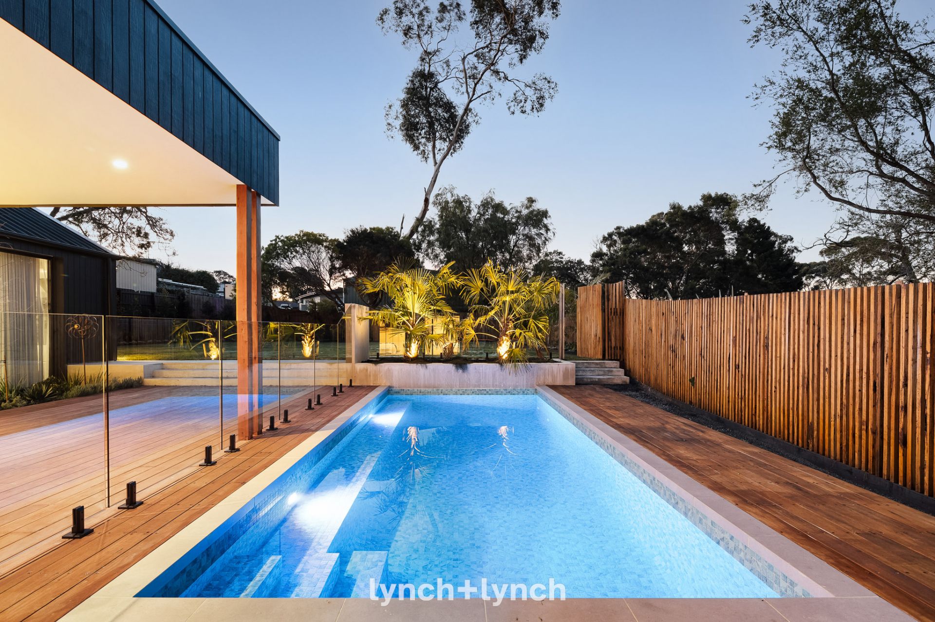 Vaulted ceilings and an impressive central internal garden courtyard anchor the open layout, where living and dining seamlessly connect to the alfresco deck and a feature swimming pool, which leads to an expansive lawn. The kitchen flows effortlessly into the main living domain, framed by expansive glazing and stunning garden vistas.