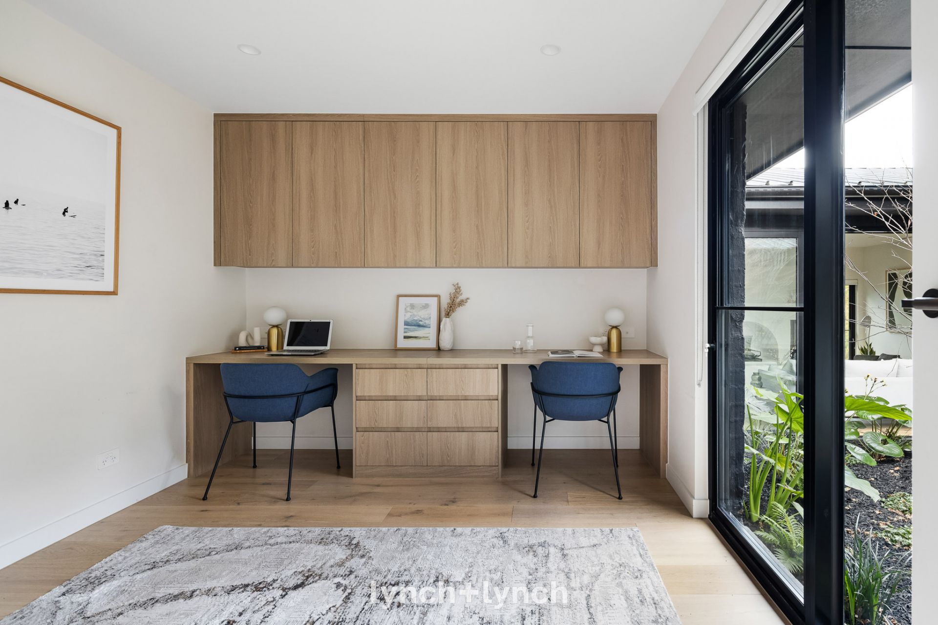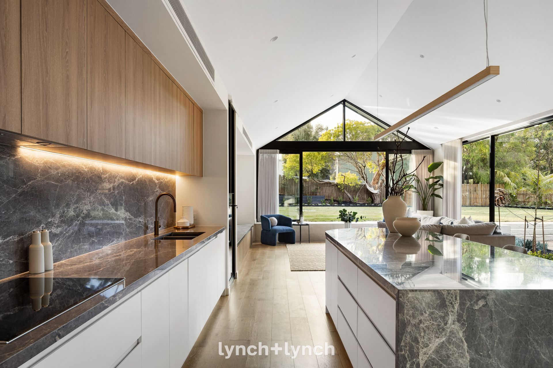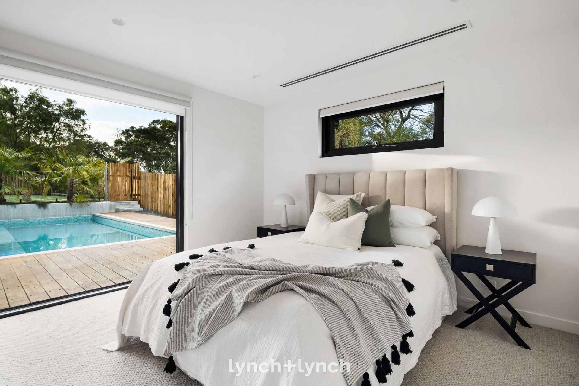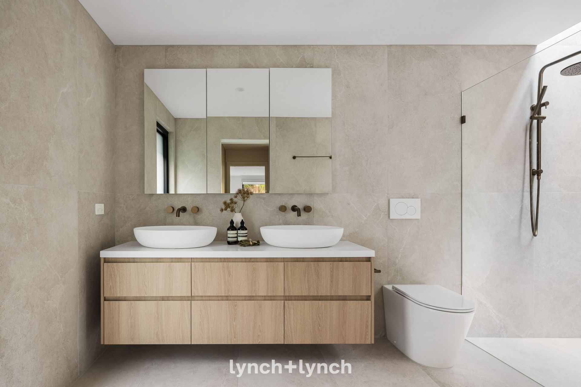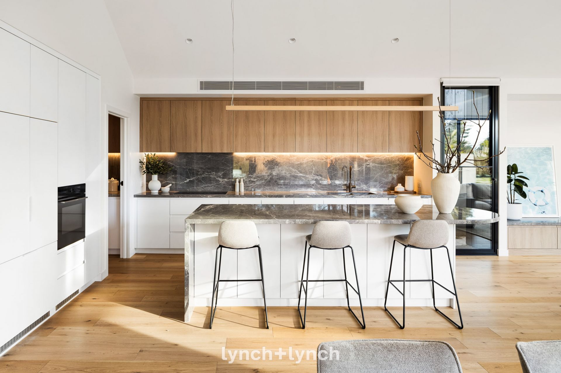 The main suite offers tranquil garden views, a walk-in robe and a fully tiled ensuite with skylit shower and designer tapware. A separate guest suite enhances flexibility, while two additional bedrooms, a fifth bedroom or home office, a zoned children's retreat, powder room, oversized double garage, and north-facing orientation complete this luxurious and functional family haven.