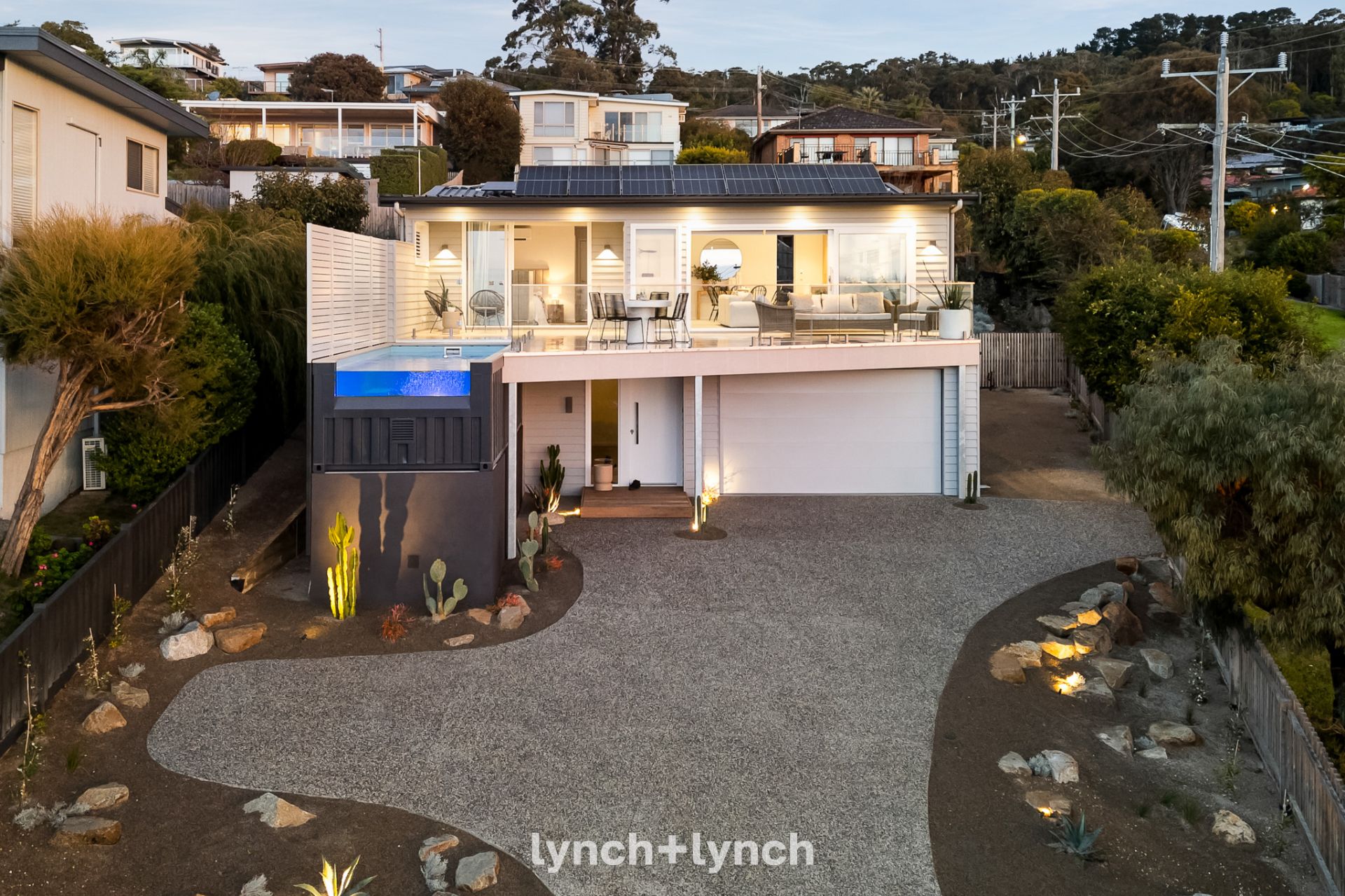 Poised high above the coastline with sweeping Port Phillip Bay views to the city skyline, this fully reimagined modern coastal home with stunning landscaping by renowned Colin Hyett Design, featured on The Block 2025, offers seamless indoor-outdoor living in complete privacy.