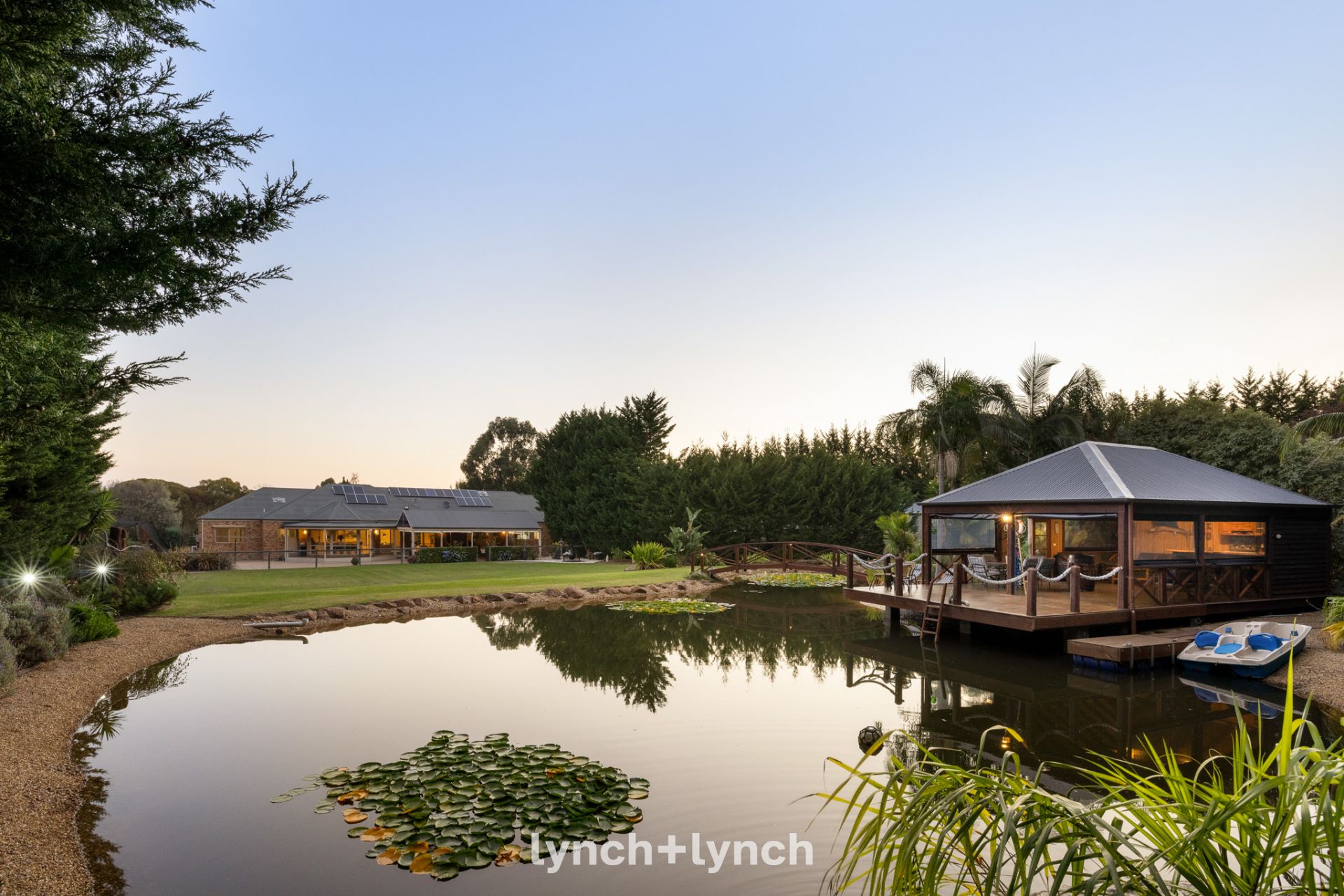 The exceptional single-level home unfolds with generous proportions and purposeful design, where an open-plan living and dining space flows from a large central kitchen, which leads to an impressive alfresco entertaining area. Further living zones include a formal lounge, home theatre, or children’s retreat. A sensational lake house complete with bar, dining, lounge and jetty is set above a tranquil ornamental lake.