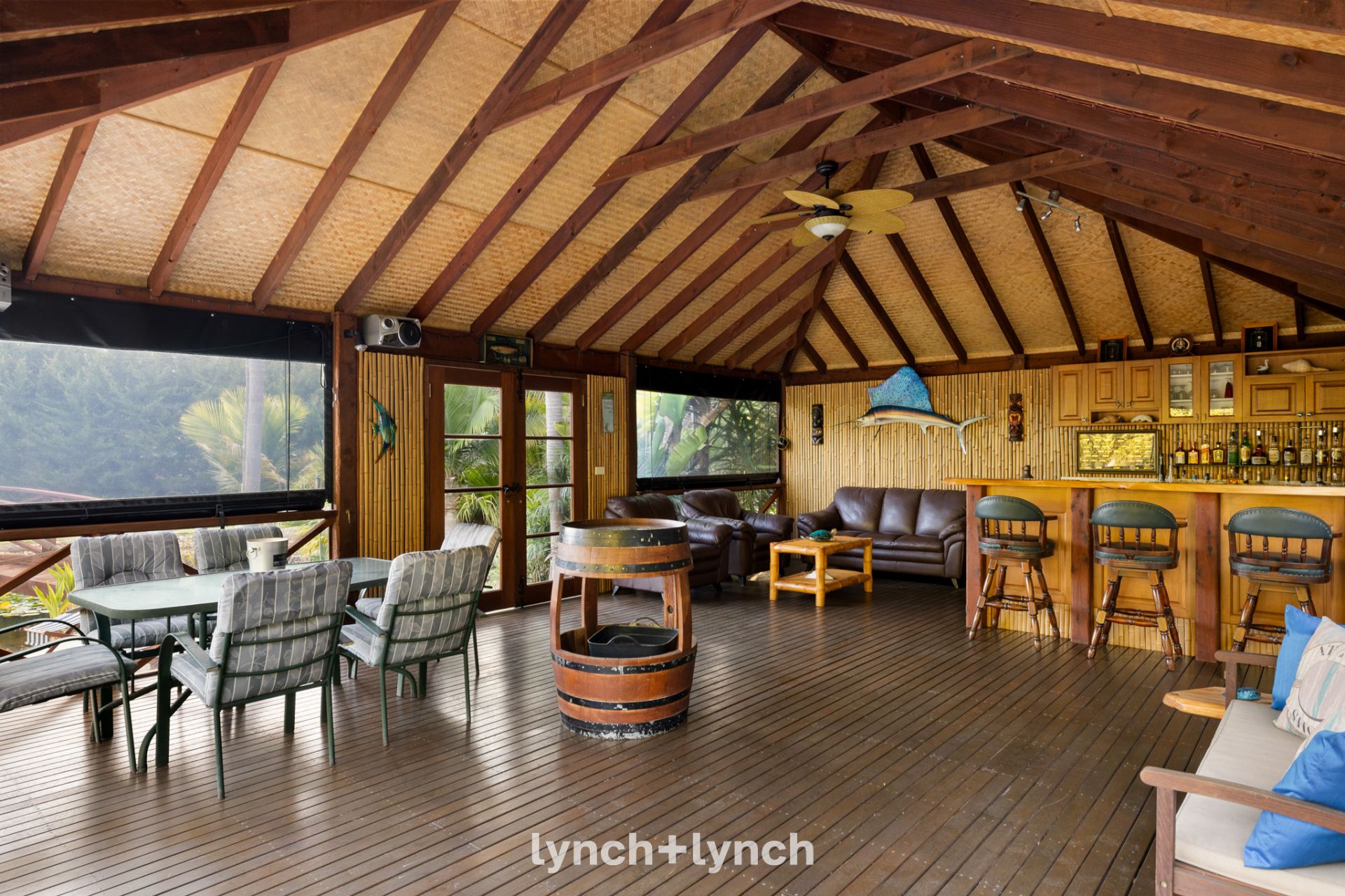 The feature portico accommodates two cars and a two-car garage connects to the home, while a separate massive shed, garage and covered boat bay in the backyard accommodates eight more vehicles. An extraordinary residence set on over two acres in a tightly held location, where timeless design and resort-style living unite to create the ultimate Peninsula escape.