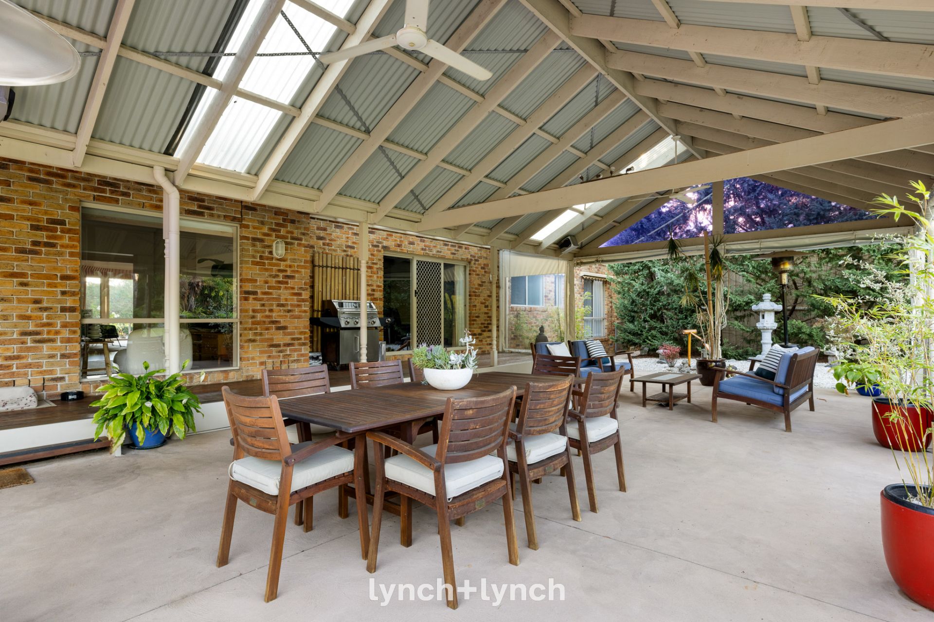 Privately zoned, the main bedroom offers leafy garden views, a walk-in robe and a stylishly renovated ensuite. Four additional bedrooms are thoughtfully positioned for family functionality, and a home office is off the main entry foyer. The home is further enhanced by a full suite of modern comforts and endless storage.