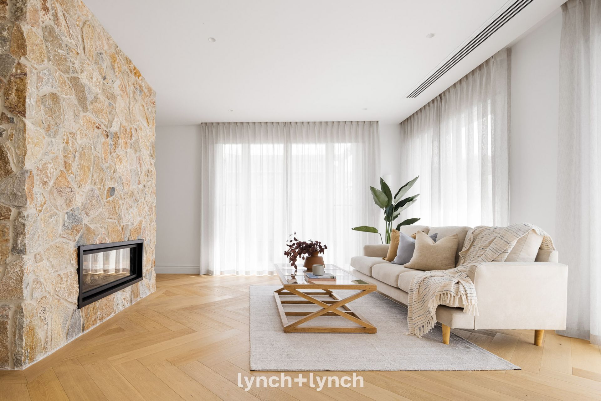 Dual glass doors open to a sunlit alfresco deck, embracing outdoor living. This luxurious residence also features advanced heating and cooling, motorised sheer linen curtains and blinds, a powder room, a double remote garage with internal access, and high-end finishes, delivering a refined coastal elegance lifestyle.