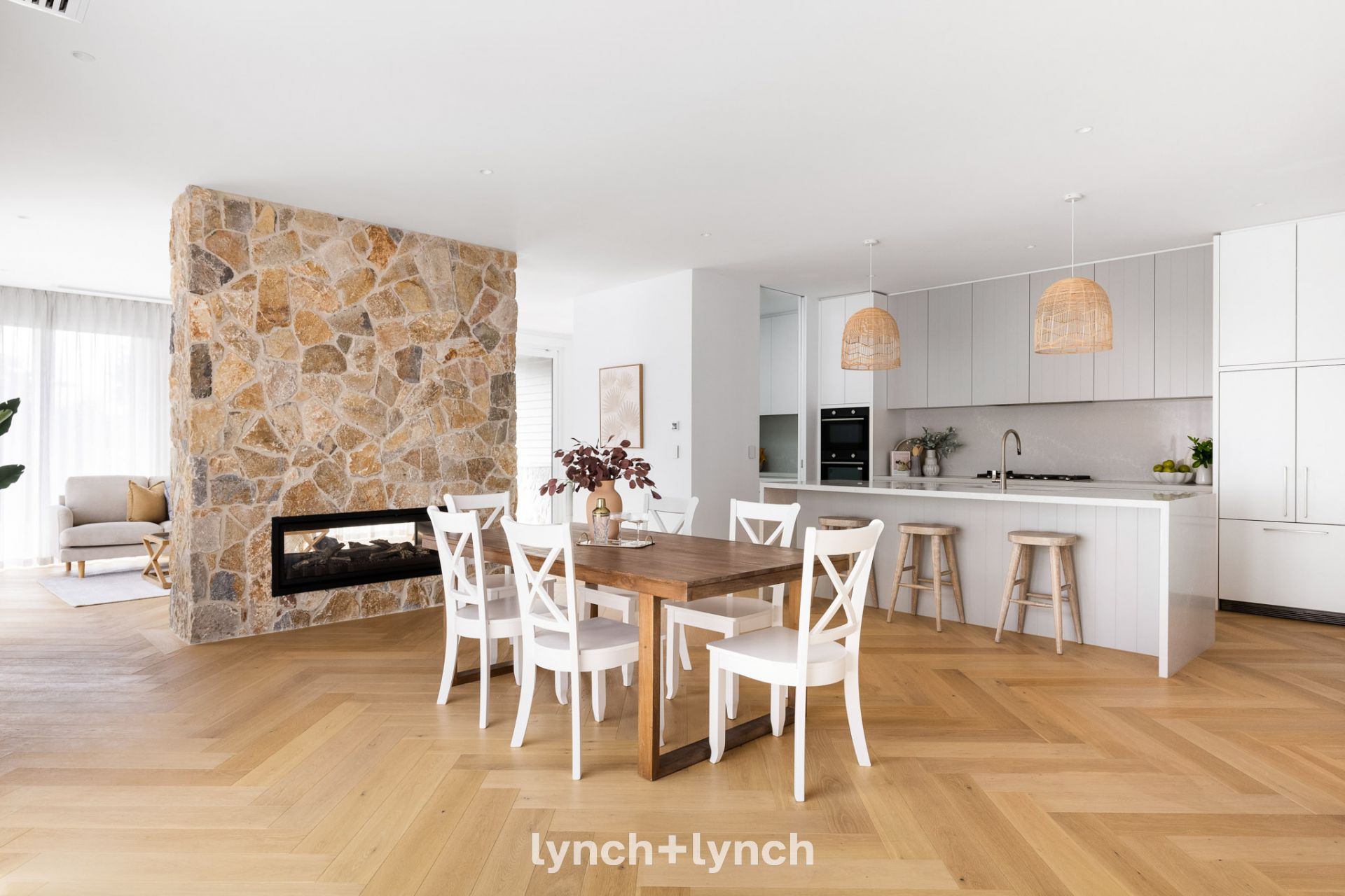 Nestled in the prestigious Beleura Hill, this brand-new beachside villa redefines luxury and sophistication. With soaring ceilings, this freestanding, single-level residence combines privacy and spaciousness. The home's light-filled lounge and dining areas are centred around a stunning two-way gas fireplace set in a towering Barwon flat stone surround, exuding Hamptons-inspired elegance.