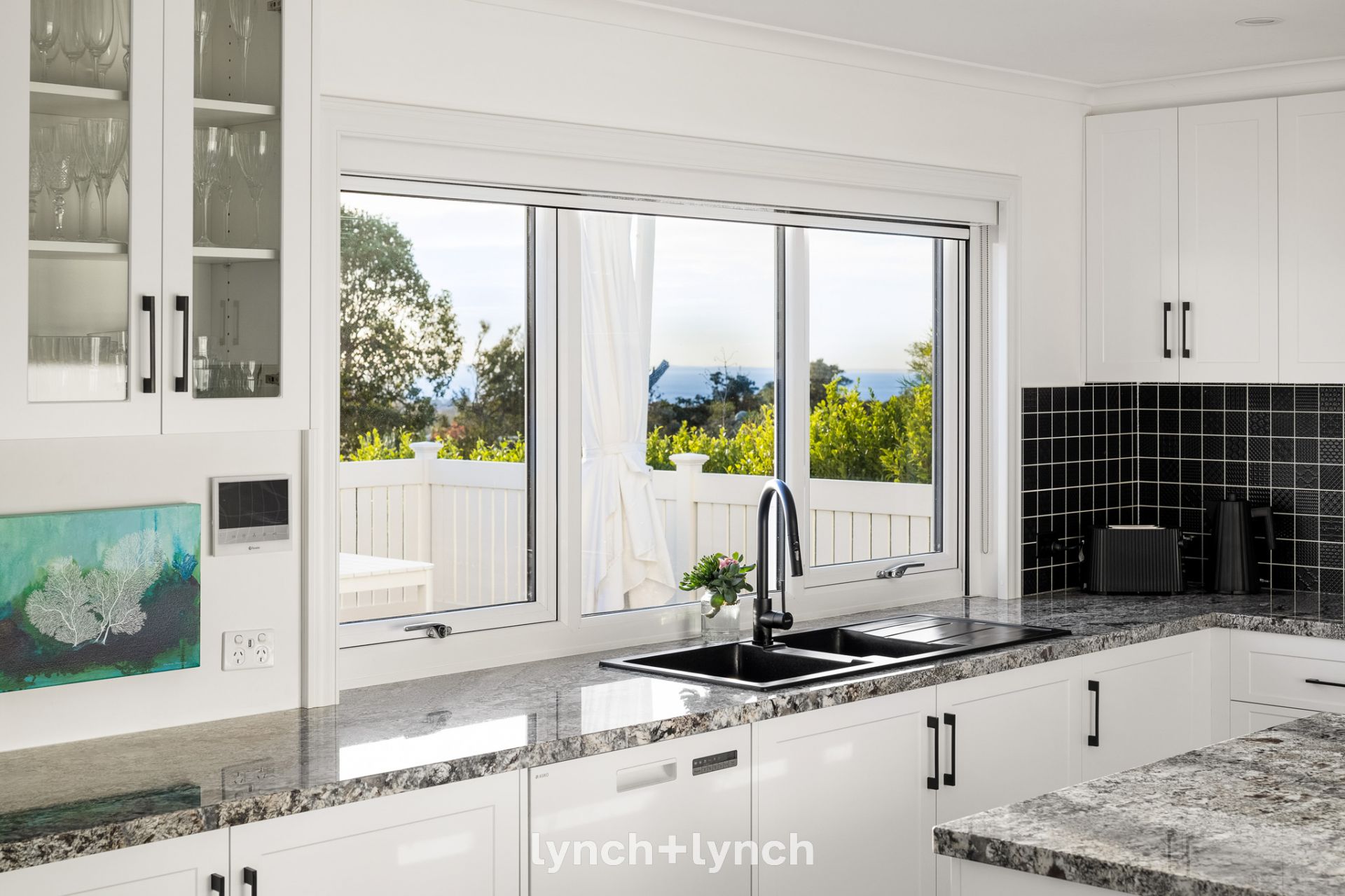 The main suite enjoys absolute privacy upstairs, featuring a walk-in robe and an elegant en-suite. Multiple living areas enhance the liveability of this beautiful home, while landscaped gardens with extensive mature herb and fruit trees, coastal breezes and magnificent sunsets create an idyllic setting in this tightly held, prized location.