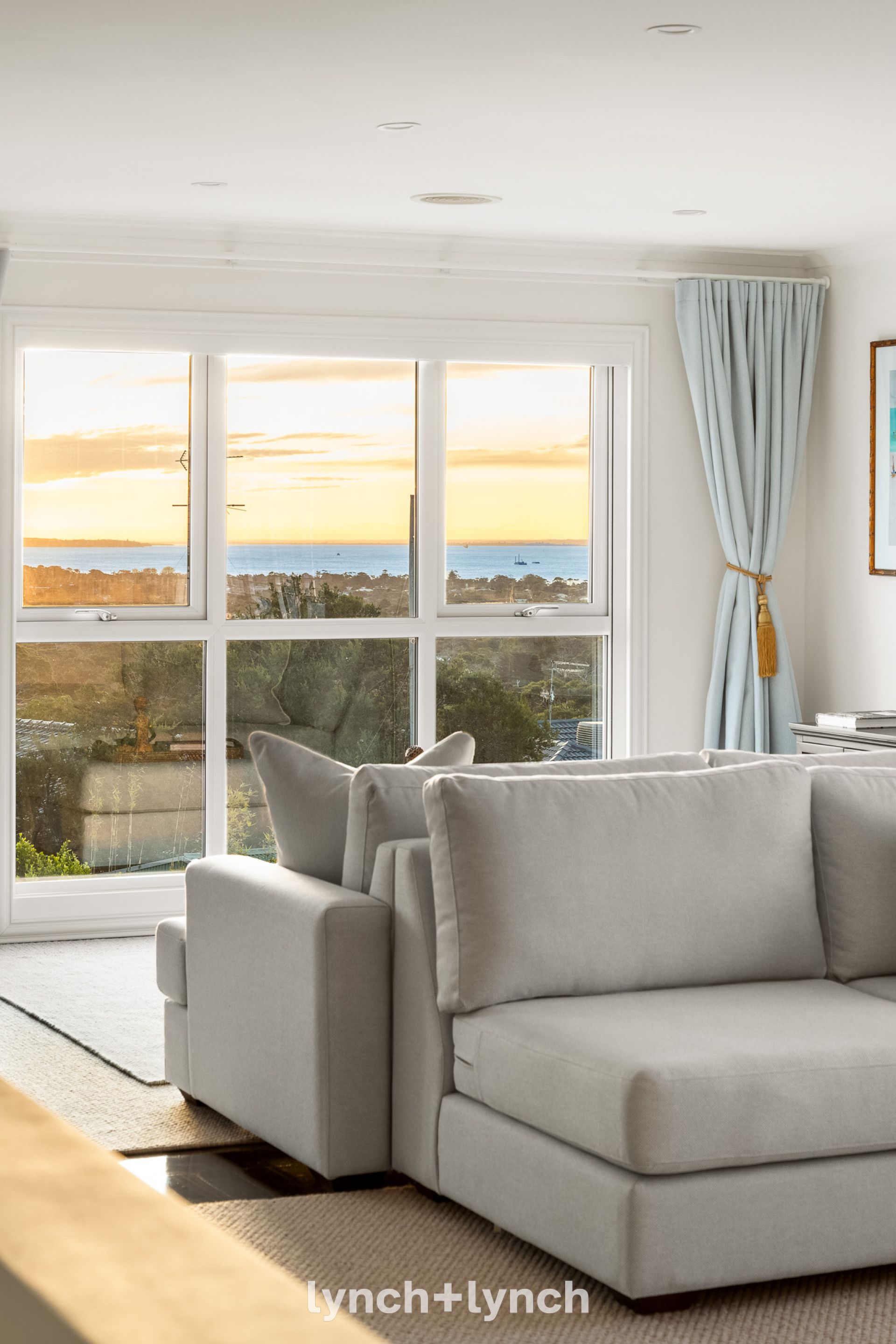 Bathed in natural light and commanding breathtaking views across Port Phillip Bay, this immaculately renovated residence at the heart of the Mornington Peninsula delivers a luxurious coastal lifestyle of generous proportions, privacy and effortless indoor-outdoor flow.